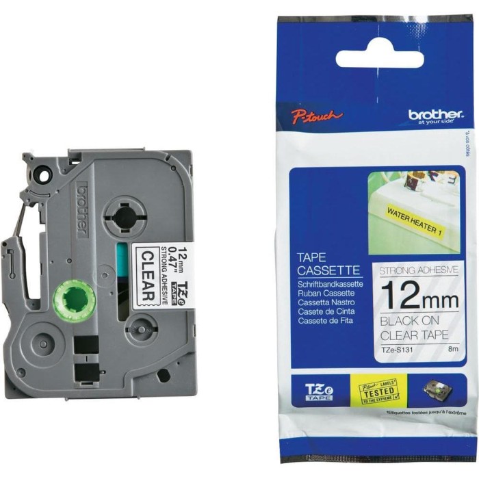 Brother Label Tape TZE-S131 12MM Black On Clear Strong Adhessive