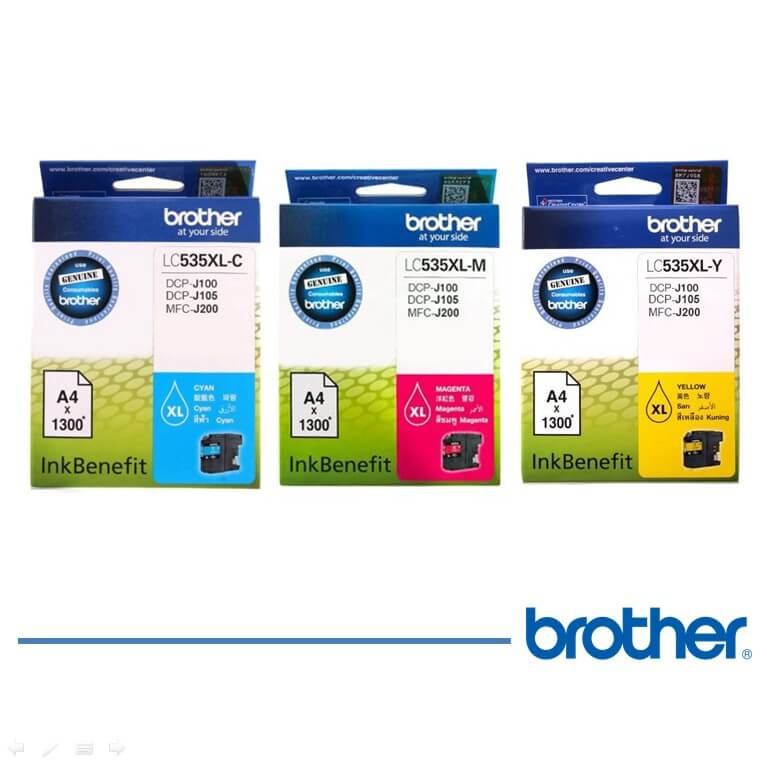 Brother LC 535 XL Cyan, Magenta, Yellow Ink Cartridge, Tinta Brother Terbaik, Harga Terjangkau. Brother Garansi RESMI, hanya di tokotintatoner.com